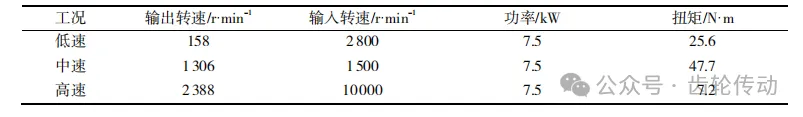 實測機床齒輪相關參數:螺旋角為0°,壓力角為20°,模數為2.25mm,齒寬為74mm,以主動小齒輪為例,齒數Z1=52,變位系數為-0.2427,從動大齒輪齒數Z2=73,變位系數為-0.2427。機床主傳動系統運行工況如表1所示。