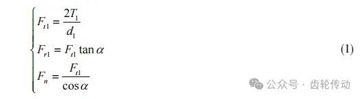 式中:T1為小齒輪傳遞轉矩(N·mm);α為壓力角。