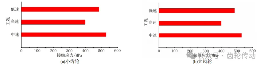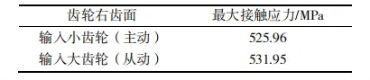 齒面接觸應力的大小和很多因素有關,如輪齒載荷、齒面相對曲率、摩擦因數和潤滑狀態等。依據齒面接觸應力的赫茲應力計算方法,進行接觸疲勞強度計算,應力表達式為