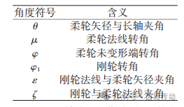 表1 諧波傳動各角度參數(shù)含義