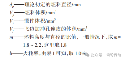 坯料直徑計算:齒輪坯屬于圓形鍛件,坯料的直徑用dp表示,計算公式為: