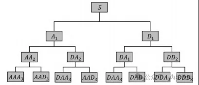 小波包分析原理:鑒于變速箱故障診斷信號的非平穩特性,振動信號中蘊含了豐富且關鍵的故障特征信息。因此,為了深入挖掘并準確解析這些特征,對軸承故障診斷信號實施更為精細的分解與分析顯得尤為重要。這一處理過程旨在從復雜的信號波動中提取出細微的故障跡象,為后續的診斷提供堅實的數據基礎。小波包分析方法通過同時處理信號的低頻和高頻部分,相當于 在信號處理中引入了高通濾波器和低通濾波器的功能,提供了更全面的信號頻譜信息。在初始階段,對原始信號進行第一層小波包分解, 得到兩部分信號:低頻成分和高頻成分。這一分解過程為提取信號的粗略特征奠定了基礎。接下來的第二層分解將這兩部分信號進一步細化,使低頻信號和高頻信號各自被分解成更多的頻率段。這一過程細化了每個頻帶內的特征,揭示了信號中更細微的變化和特征。理論上,隨著分解層級的增加,小波包分析能夠逐步展現原始信號在更廣泛頻帶范圍內的詳細信息。這種逐層深入的分析方式允許捕捉信號的各種頻率成分, 提供更精細的頻譜特征。這不僅幫助人們更準確地理解信號的頻率特征,還為后續的信號處理和故障檢測提供了豐富的數據支持。圖1展示了小波包分析在第3層分解時的樹狀結構圖, 直觀地展示了信號分解的層次和頻帶劃分的精細程度,為后續的信號分析和故障診斷奠定了堅實的基礎。