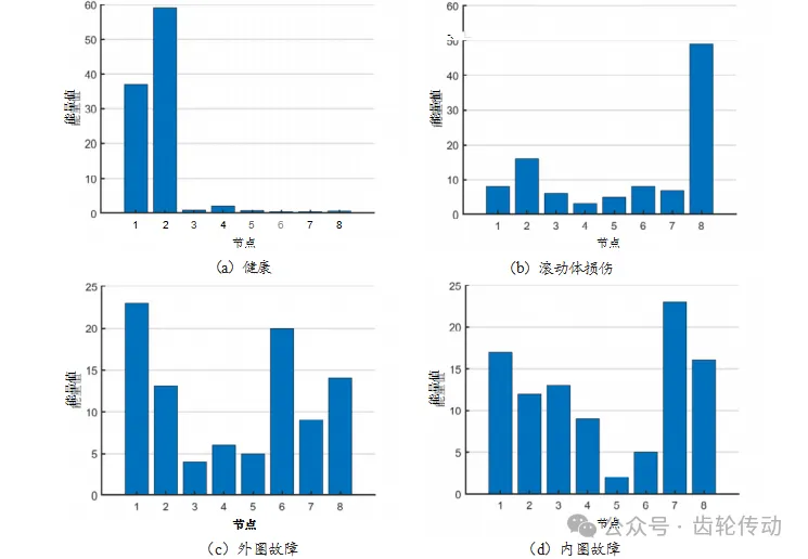 圖3 不同故障形式下的信號頻段能量分布
