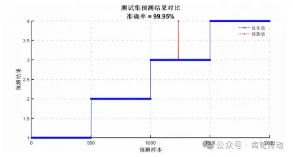 從圖5中可以看出,本文的測試集樣本總數為2000個。BP神經網絡的診斷算法在這些測試樣本上的識別率達到了99.95%,這充分表明了該算法在故障診斷中的高效性和準確性。這一結果驗證了模型在處理實際數據時的出色性能,進一步證明了其在實際應用中的有效性。