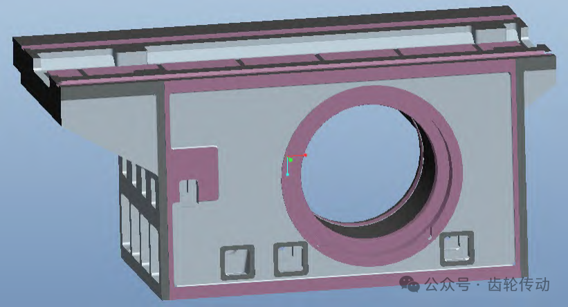 機床立柱是連接中托板與床身的重要部件,是機床重要的基礎支撐件,同時也是保證機床主軸的X軸向運動精度的主要結構件。H150G數控螺旋錐齒輪加工機床立柱采用的是非完全對稱性結構,坐落式安裝在機床床身上。