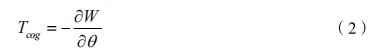 齒槽轉(zhuǎn)矩分析:驅(qū)動(dòng)電機(jī)齒槽轉(zhuǎn)矩由轉(zhuǎn)子永磁體與定子齒槽之間的磁阻變化引起,其周期性波動(dòng)會(huì)導(dǎo)致轉(zhuǎn)矩脈動(dòng)和振動(dòng),磁能對(duì)轉(zhuǎn)子位置的導(dǎo)數(shù)計(jì)算公式: