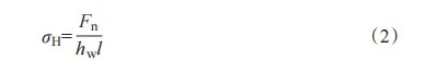 對齒面的接觸應力載荷進行校核,防止接觸失效。根據單個齒形的法向線載荷Fn、工作齒高hw和連接長度l,得到齒面壓應力σH,即: