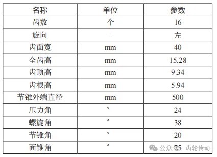 表 1 弧齒錐齒輪參數