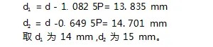 換擋軸:根據換擋軸選擇的材料,摩擦因數為0.07。取螺距P為2mm,線數Z為2,螺桿大徑d為16mm,計算螺桿的小徑d1和中徑d2: