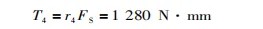 考慮到加工和裝配的便利性,選取驅動構件的半徑r4為32mm,再根據選擋力FS為40N,驅動構件的阻力矩T4為: