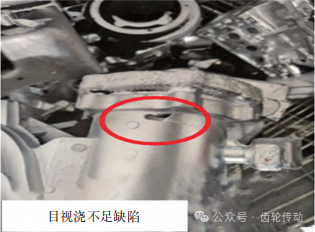 圖 5 齒輪泵殼體油濾罐部位澆不足缺陷