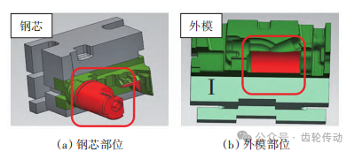 (2)由于鑄件結構限制,無法在其上方設置冒口。內腔鋼芯和金屬外模材質為H13(見圖10);