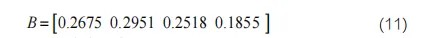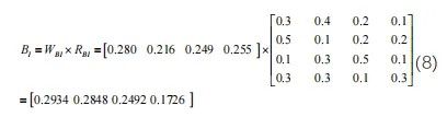 計算得到準則層B各因素的模糊評價矩陣如下: