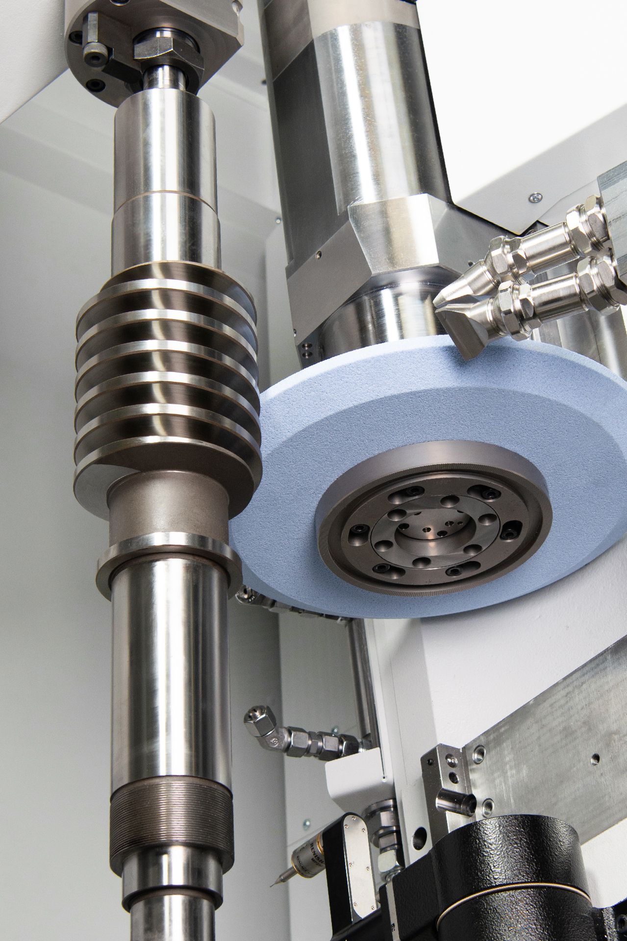 KNG 5P expert具有出色的裝配便利性。更換修整滾輪時,直接驅動的修整主軸可旋轉到符合人體工程學的位置。因此,修整刀具可以在機床外面輕松更換。優化后的支座具有850 mm的行程,上面安裝的擺動式尾座具有可無級調節的尖端壓力(最高 2,000 N),顯著擴展了尖端夾緊的應用范圍。
