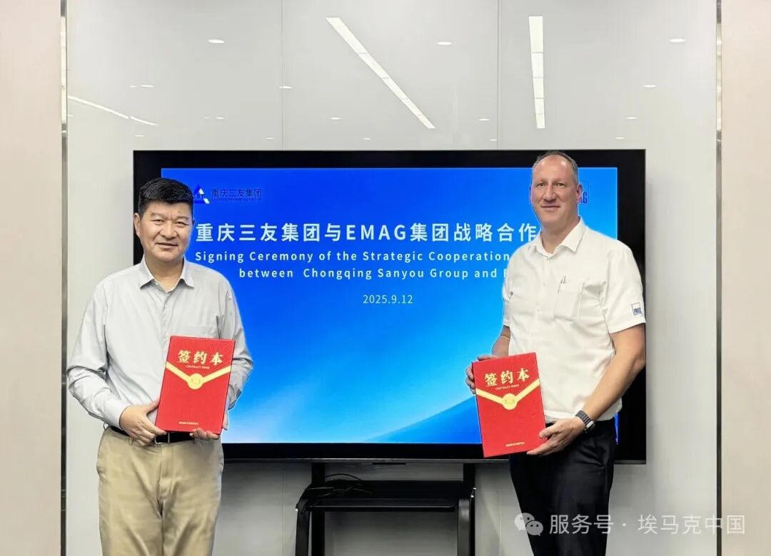 September 12, 2025 – The EMAG Group officially signed a strategic cooperation agreement with the Chongqing Sanyou Group, a core manufacturer of automotive components in China. The signing ceremony was held at Sanyou Group's Tongliang factory in Chongqing, attended by Markus Clement, Global CEO of EMAG Group, and Shen Wenjun, Executive Chairman and President of Sanyou Group. This strategic partnership represents a significant decision built upon years of successful collaboration and deep mutual trust, taking the relationship to a new level of comprehensive, deepened, and upgraded cooperation.
