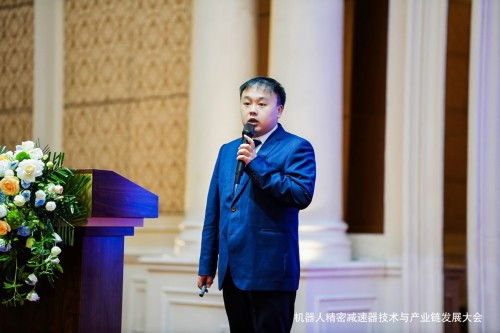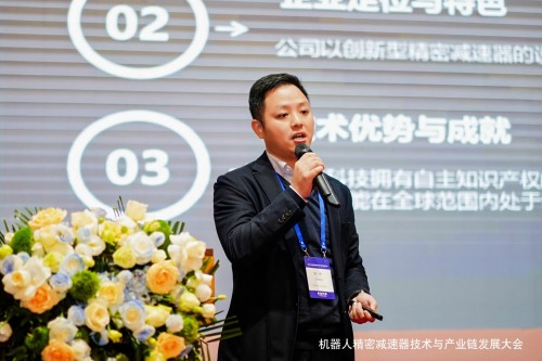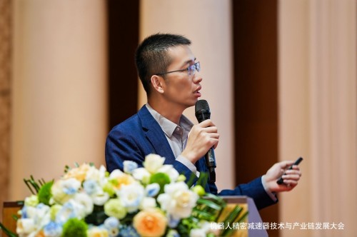 愛磁科技寧波有限公司銷售總監余杰先生分享的報告是:《全球首款“零背隙+超高效率”架構精密減速器》,該產品為愛磁科技自主研發,填補了高節拍場景專用減速器的空白,推動高端裝備制造業升級。
