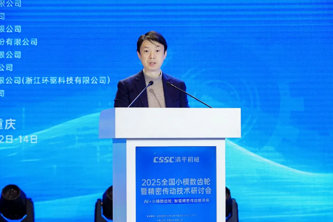 會議宣讀了小模數齒輪專業工作牽頭人俞仁楠先生的工作報告《從三線建設到智能傳動:小模數齒輪產業的堅守與突破》。他在報告中深情回顧了行業前輩在國家“三線建設”時期奠基立業的艱辛歷程與奉獻精神,講述了行業企業追求“專精特新”的升級之路,這些單位以小模數齒輪制造為根基,共同致力于深耕“AI+精密齒輪傳動”領域,堅持協同發展,齊頭并進,奮發前行。
