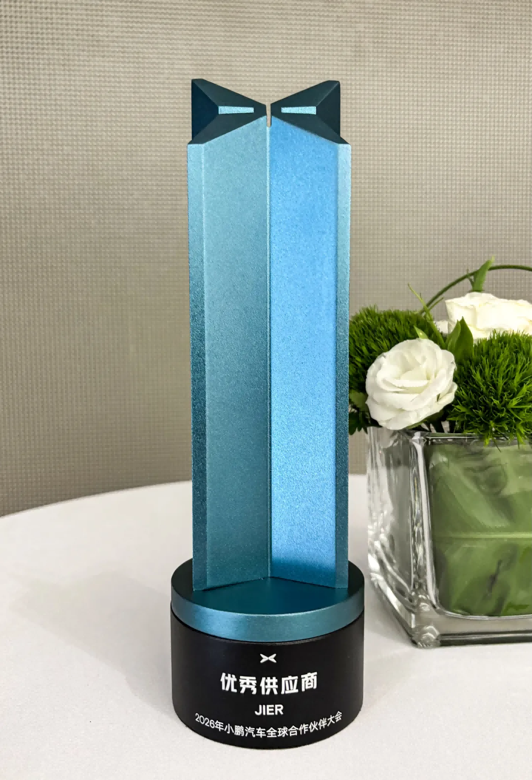 ▲小鵬汽車“優(yōu)秀供應商”獎杯