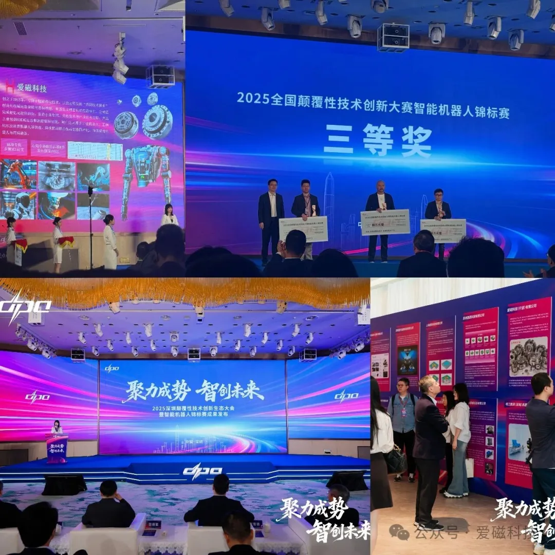 近日,在2025全國顛覆性技術(shù)創(chuàng)新大賽智能機(jī)器人錦標(biāo)賽中,愛磁科技“全球首創(chuàng)H3K減速器、消隙塑料諧波減速器項(xiàng)目”脫穎而出,榮獲大賽三等獎(jiǎng)。此項(xiàng)榮譽(yù)是對(duì)公司在機(jī)器人核心傳動(dòng)領(lǐng)域原始創(chuàng)新能力與產(chǎn)業(yè)化成果的權(quán)威認(rèn)可。